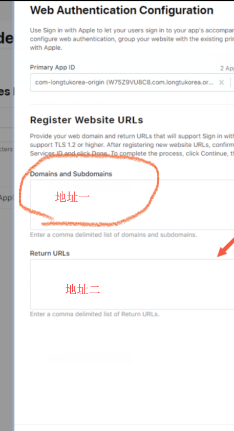 在该Services ID下面配置以下2个地址(目前提供韩国和全球区域的配置参数,其他区域如有需求需要联系技术支持人员沟通确认)